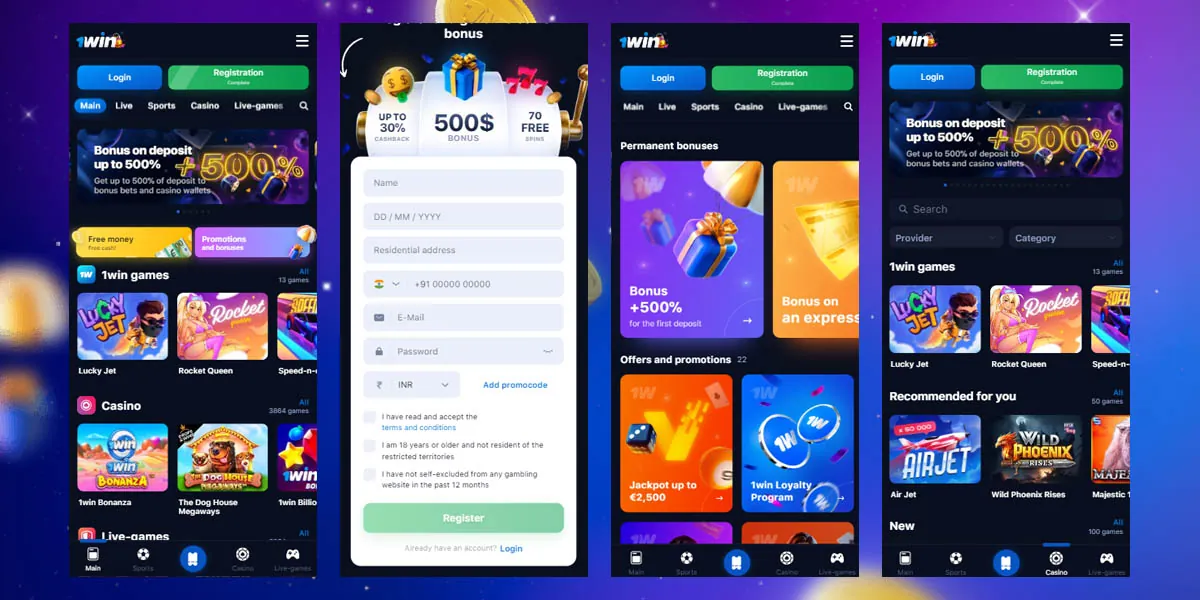 1Win App Screenshots